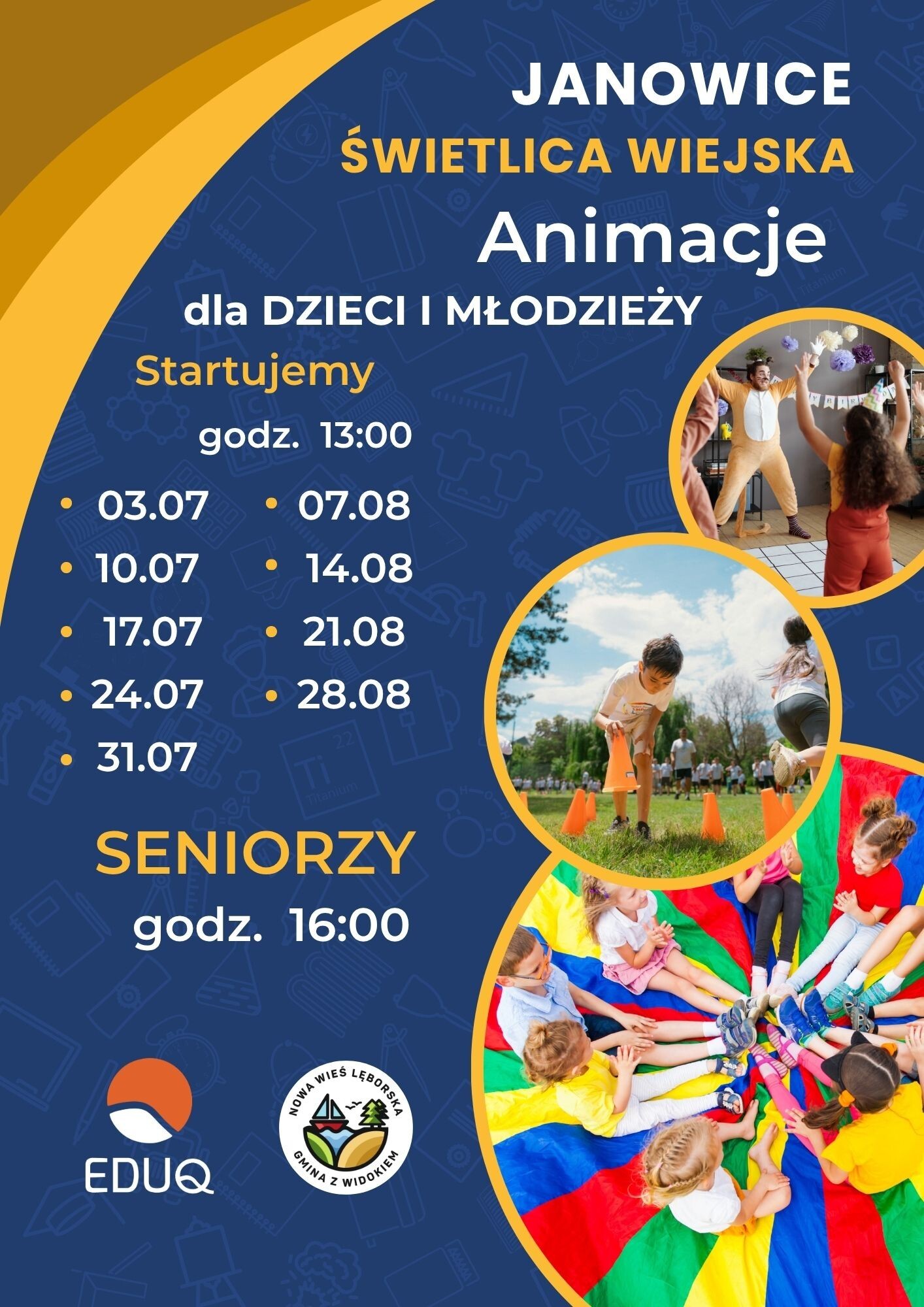 Projekt „Akcja Animacja – wakacje ze Stowarzyszeniem EDUQ” to inicjatywa skierowana do dzieci, młodzieży i mieszkańców wsi, mająca na celu integrację, aktywizację oraz wspólne spędzanie czasu podczas wakacji.