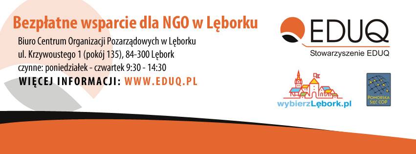 Od 2 stycznia 2018 roku w Lęborku, dzięki dofinansowaniu Miasta Lęborka zapraszamy wszystkie organizacje pozarządowe oraz grupy nieformalne z terenu Lęborka do korzystania w Centrum Organizacji Pozarządowych z BEZPŁATNEGO, profesjonalnego wsparcia.
