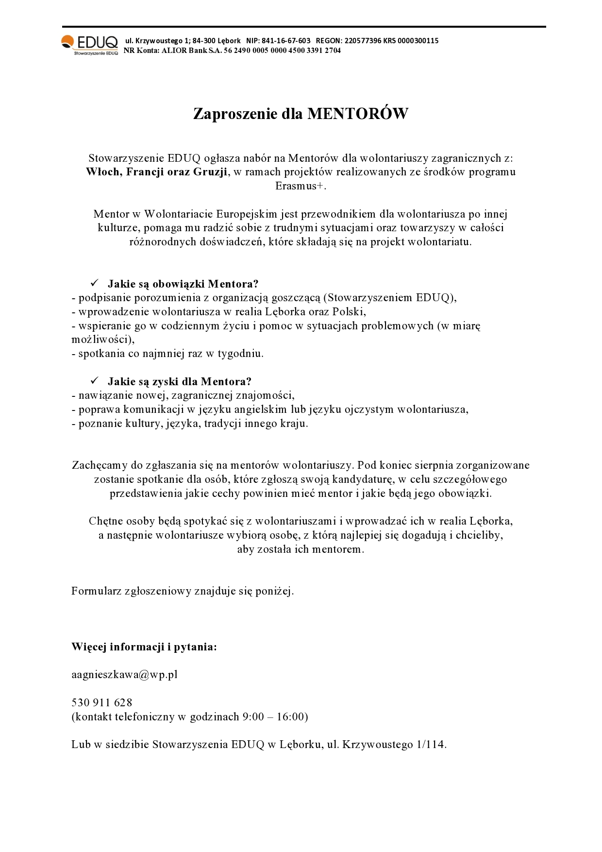 Poszukujemy mentorów dla wolontariuszy europejskich !
